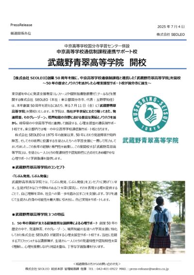 «前へ「プレスリリース(武蔵野青翠高等学院)」